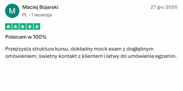 Z naszym systemem przyjaznych płatności to nie problem! Zamów kurs już teraz, zacznij naukę jeszcze dziś, a zapłać dopiero za miesiąc lub w ratach. Szczegóły znajdziesz tutaj.